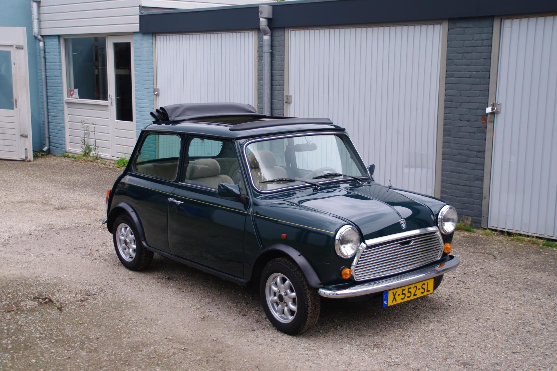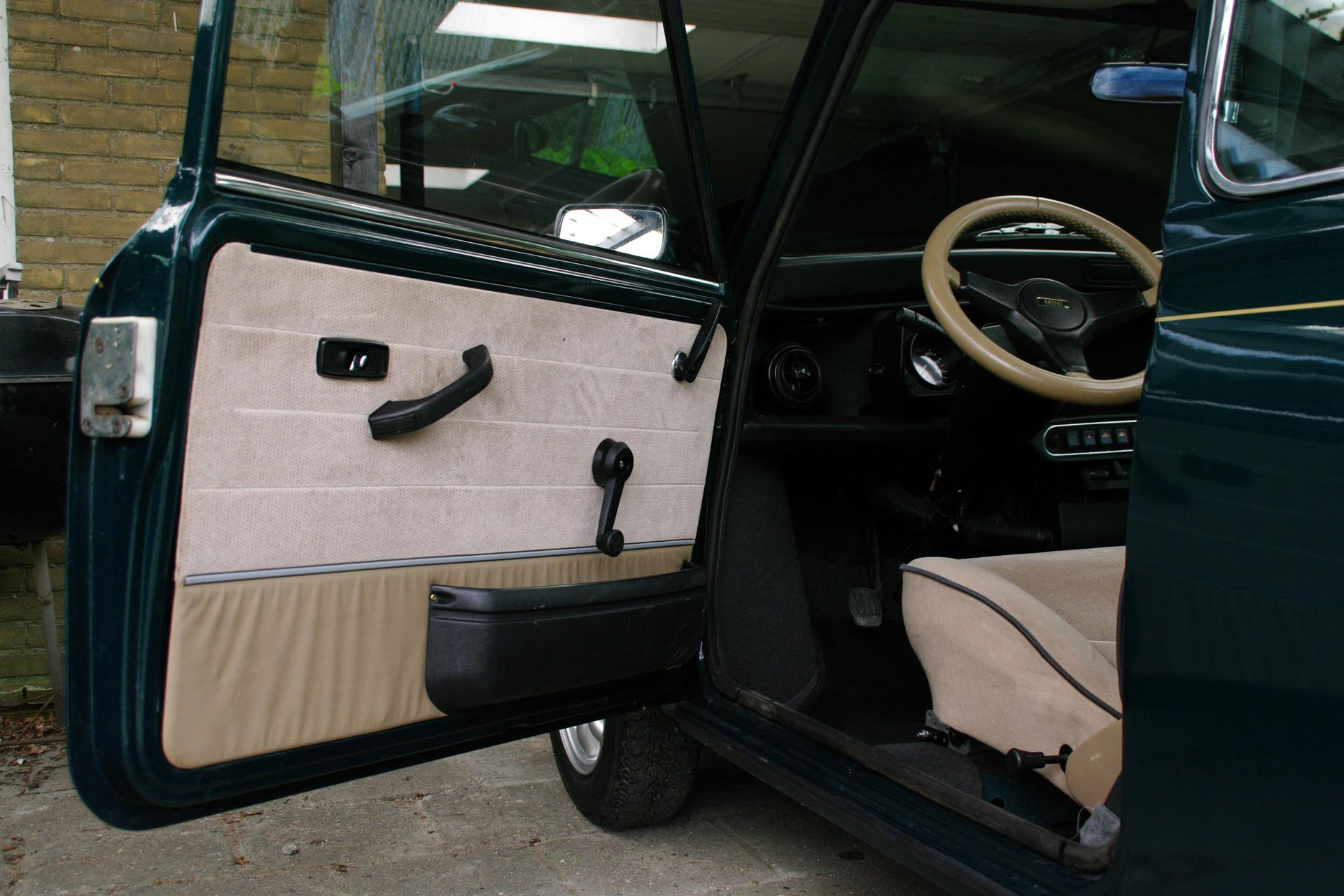 Deze Mini 1300 British Open is nu bij ons te koop. een fantastisch rijdende classic Mini die altijd met gemak start door zijn 1.3 liter injectiemotor. deze uitvoering kwam uit de fabriek met het elektrische zonnedak wat hem vrij uniek maakt en veel doet voor het al zo grote rijplezier van een classic mini. de auto is geïmporteerd uit België en begin dit jaar bij ons bedrijf aandachtig gerestaureerd. de auto is grotendeels uit elkaar gehaald en opnieuw gespoten in de originele kleur, vervolgens hebben we de auto voorzien van een heleboel nieuwe onderdelen en het zonnedak opgefrist door middel van nieuw vinyl. bij aflevering wordt de auto APK gekeurd.