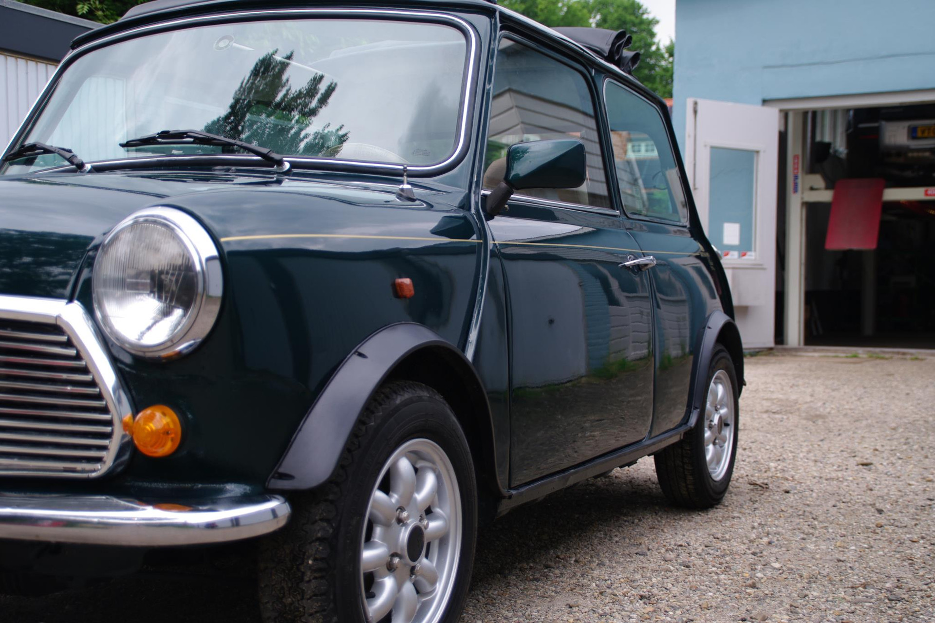 Deze Mini 1300 British Open is nu bij ons te koop. een fantastisch rijdende classic Mini die altijd met gemak start door zijn 1.3 liter injectiemotor. deze uitvoering kwam uit de fabriek met het elektrische zonnedak wat hem vrij uniek maakt en veel doet voor het al zo grote rijplezier van een classic mini. de auto is geïmporteerd uit België en begin dit jaar bij ons bedrijf aandachtig gerestaureerd. de auto is grotendeels uit elkaar gehaald en opnieuw gespoten in de originele kleur, vervolgens hebben we de auto voorzien van een heleboel nieuwe onderdelen en het zonnedak opgefrist door middel van nieuw vinyl. bij aflevering wordt de auto APK gekeurd.